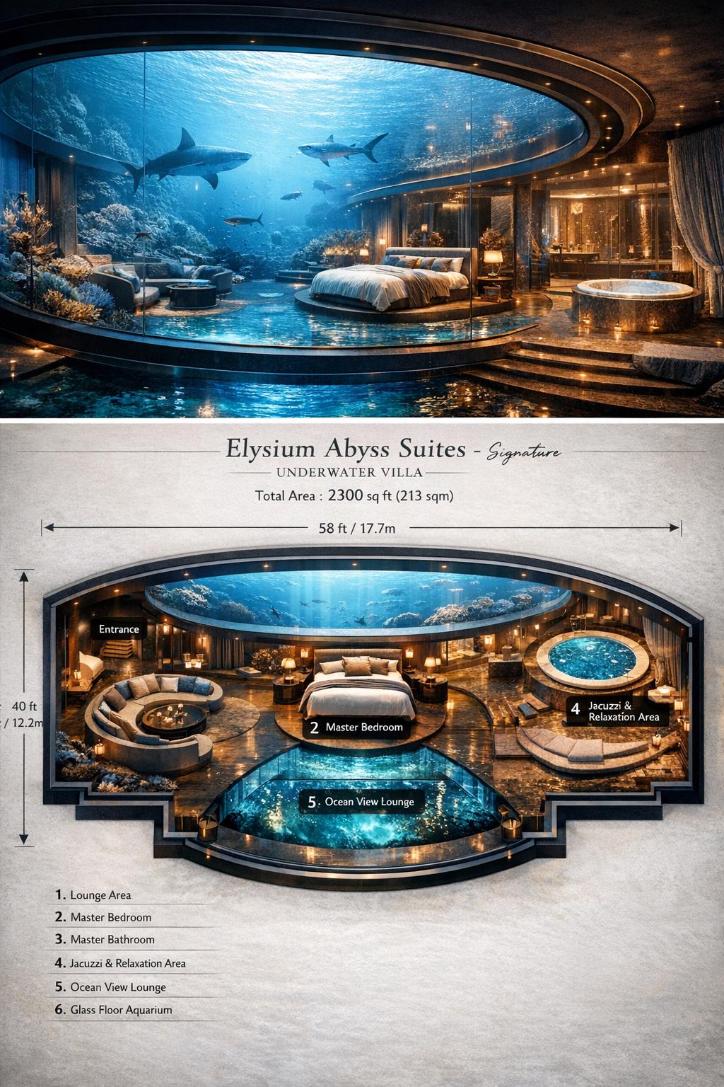 Ultra-exclusive tier featuring signature underwater suites and deep-jungle beachfront estates.
