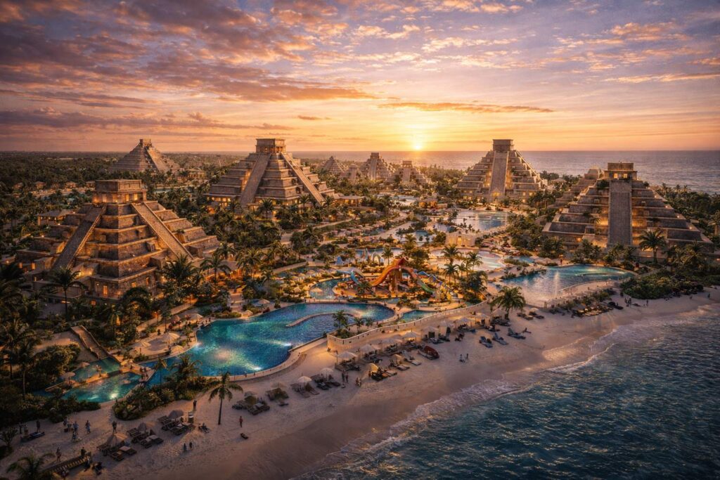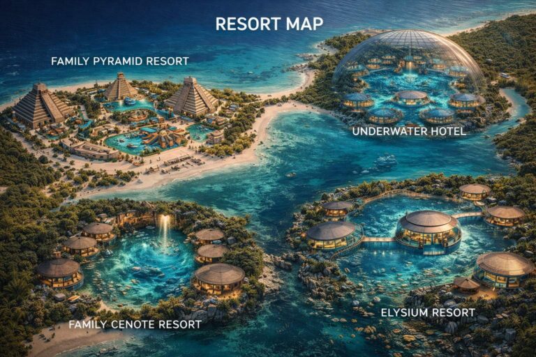 Elysium Tulum Resort is a master-planned hospitality destination integrating ultra-luxury beachfront living, themed family resort environments, cenote-centered architecture, and immersive experiential design. Structured as a destination ecosystem rather than a single hotel, the project redefines integrated tourism development in Mexico.