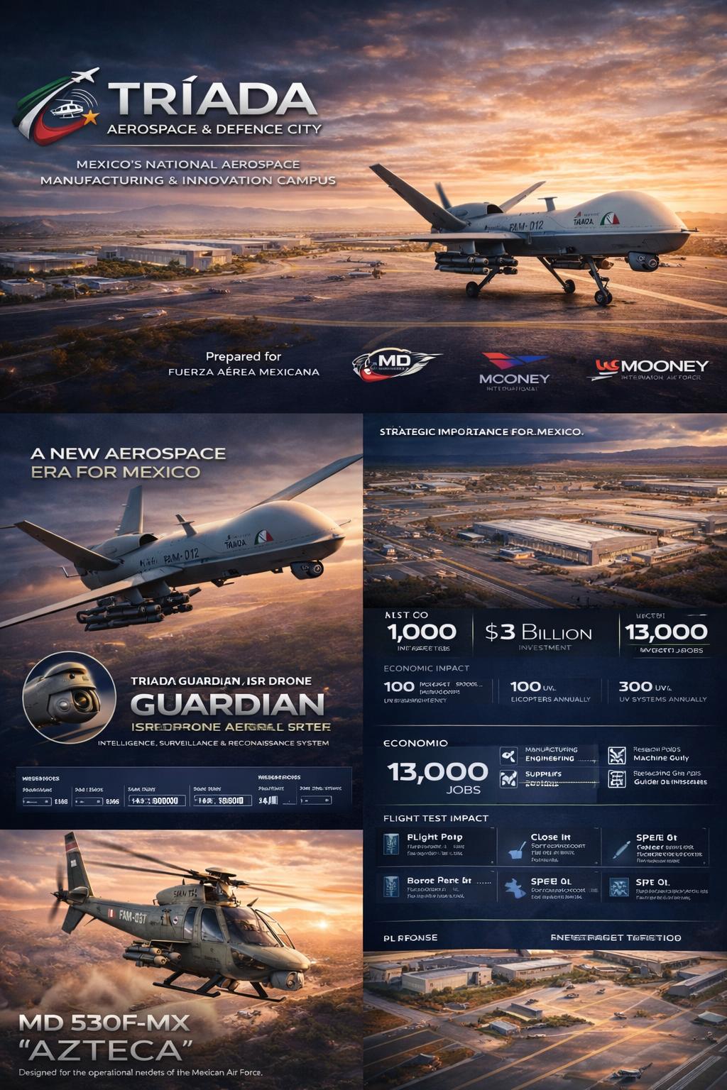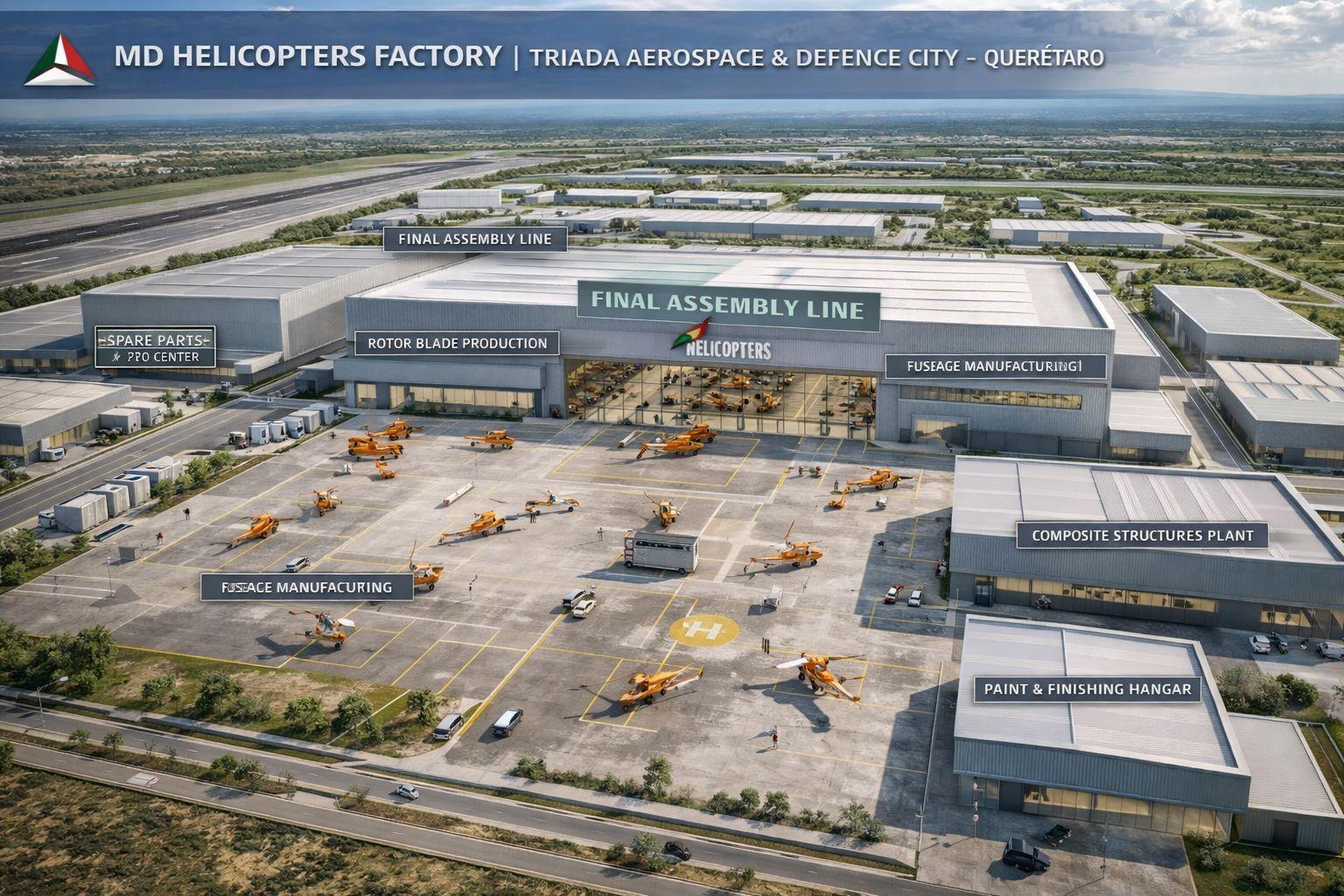 Triada Aerospace & Defence City – Querétaro represents a new national aerospace manufacturing hub designed to support the Mexican Air Force, domestic aviation programs, and international aerospace production.